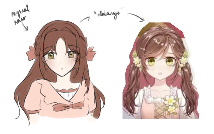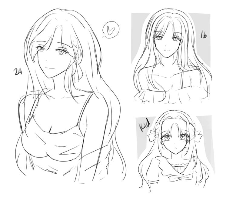 my sona in tears of themis is literally just the mc (rosa) with longer hair (see the image above). the bangs was also parted in a way that i use. though the shade is different on the illustration, this is only done to match my dull/warm palette.i did contemplate about making my own and just using my appearance to present myself as is, but i think that would ruin my immersion in the game.also, a part of me doubted it would be necessary to create one as i do already share certain qualities with the mc (age from in-game, height, beliefs, life stage as a working adult, likes, etc). the only major difference is hair color and eyes (as i have black and brown respectively) and the job occupation itself. however, everything else is the same so it is something i can get by. going forth with this, i can also enjoy the illustrations in the episodes and the cards more.anyway, to align the change with the game, let’s just say that the bangs hairstyle (canon rosa hairstyle) is hairstyle #2. it’s what’s used for work/school/outdoors. at home or with marius there’s no need to keep it all together properly so it can be undone and instead changed into something simple (see image below for the hairstyle throughout the years).